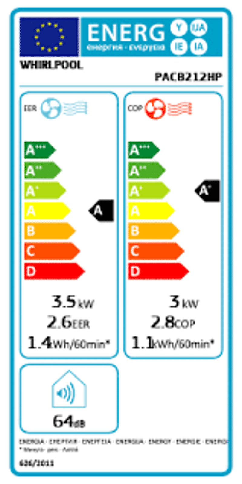 La consommation électrique du Whirlpool PACW212HP est raisonnée.🌎