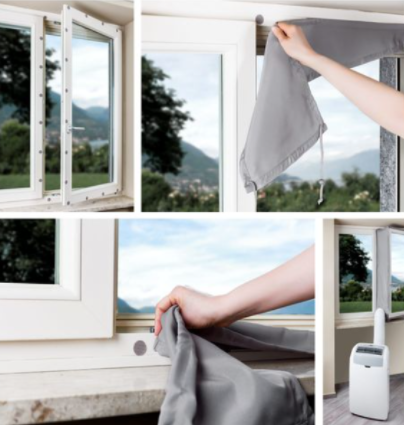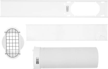 - Branchez le tuyau d’évacuation de l’air sur le climatiseur mobile et placez-le à l’extérieur, au travers du kit de coulissement fenêtre.