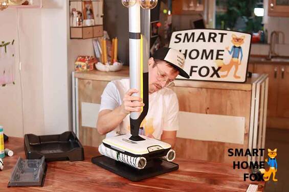 Le Kärcher FC7 est légèrement plus grand que la plupart des nettoyeurs de sols. Cependant, cela n’est pas un problème, car la poignée peut être inclinée pour manœuvrer l’appareil 👍