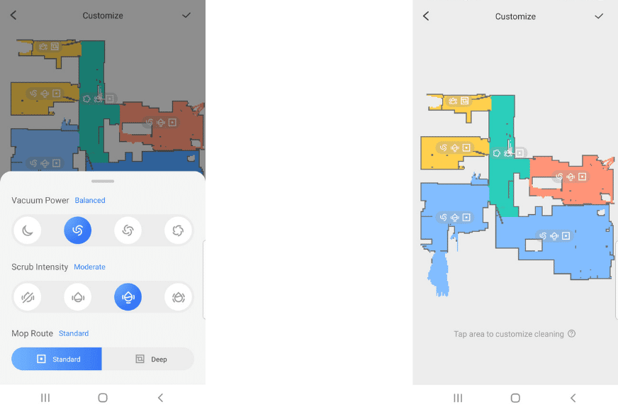 Afin de modifier le mode de nettoyage désiré vous pouvez utiliser l'application. Il existe 3 modes : nettoyage rapide, standard et en profondeur 🧽