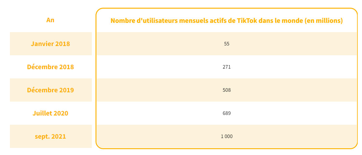 Ces chiffres tiktok mais dans un tableau :