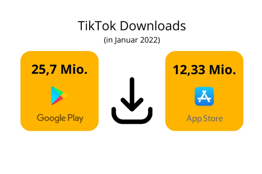 En janvier 2022, l'application avait été téléchargée 12,33 millions de fois dans le monde par les propriétaires d'iPhone via l' App Store ce mois-là 📱Encore plus de téléchargements en janvier provenaient d'appareils Android via le Google Play Store .TikTok a été installé au total 25,7 millions de fois au mois de Janvier.
